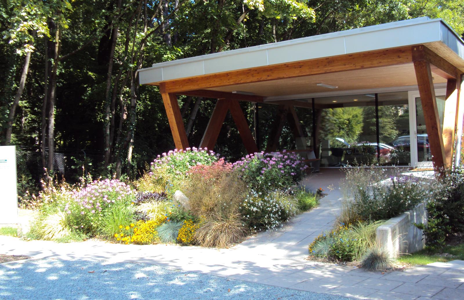 Conçu et réalisé par les ingénieurs et architectes suisses de Charpente Concept et Ganz & Mueller, le Centre Jean-Jacques Gautier a été bâti principalement en bois certifié suisse, dans le respect des principes du développement durable. La certification Minergie garantit que le bâtiment respecte l'environnement et qu'il répond efficacement aux critères d'économie d'énergie, sans consommation de carburants fossiles tels que mazout, gaz ou charbon.