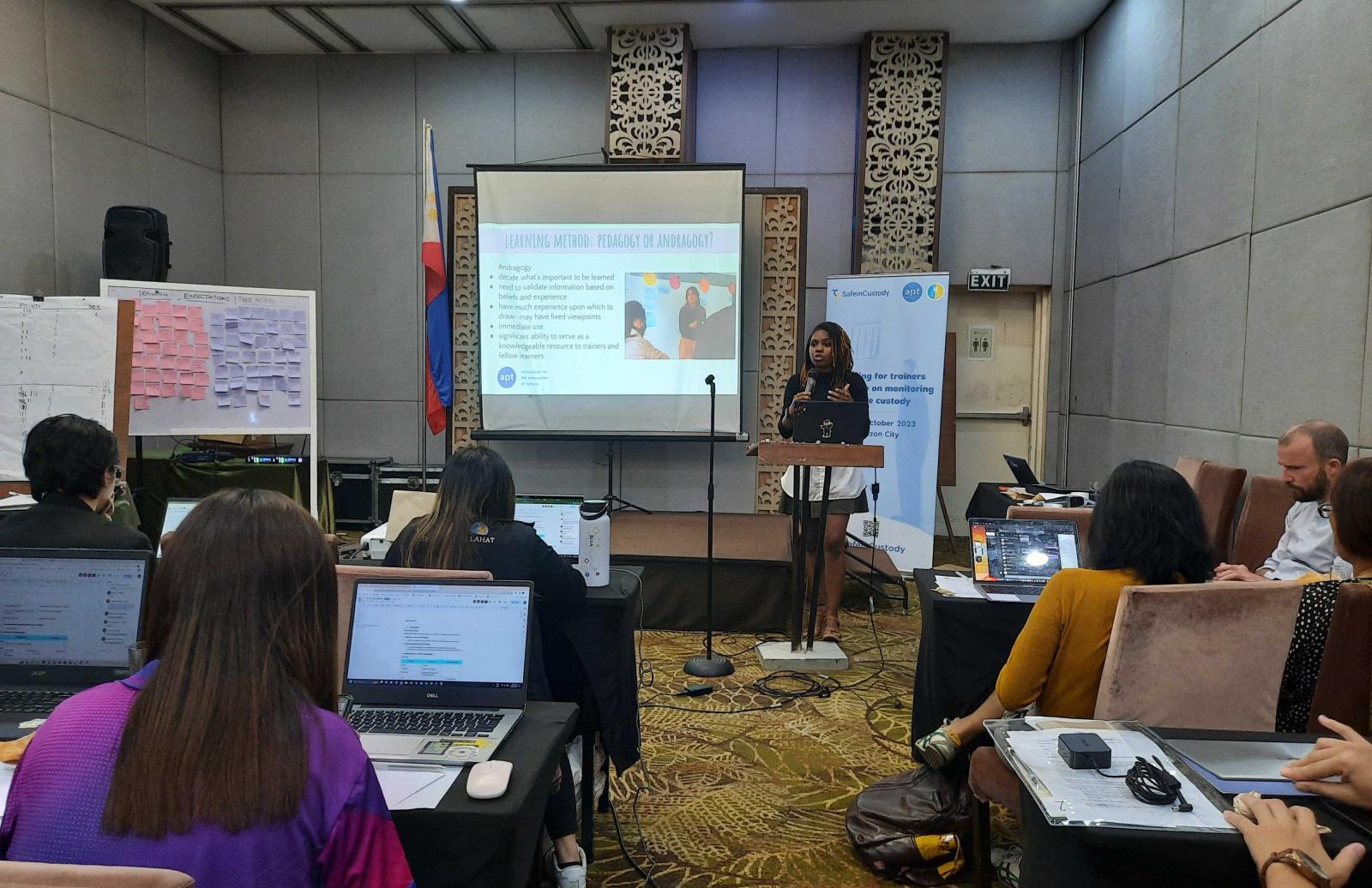 The training included practical exercises to prepare for, conduct and follow up on visits to police custodial facilities, including methods of interviewing and using ‘double SMART’ methods to develop report recommendations. In addition, tools, techniques and resources for designing and implementing trainings were shared with participants.