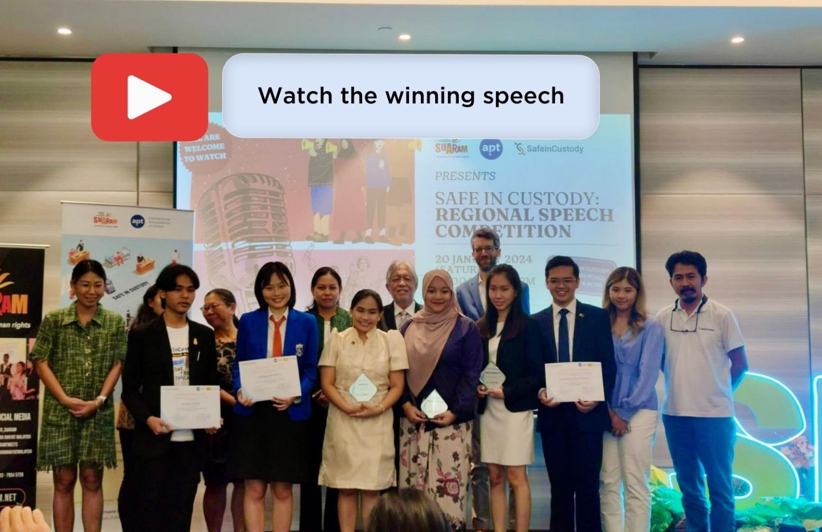 Six university students representing Malaysia, Philippines and Thailand competed at the #SafeInCustody regional speech competition, held in Kuala Lumpur in January 2024.